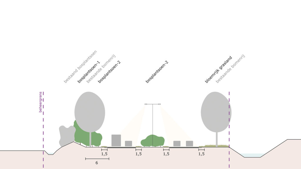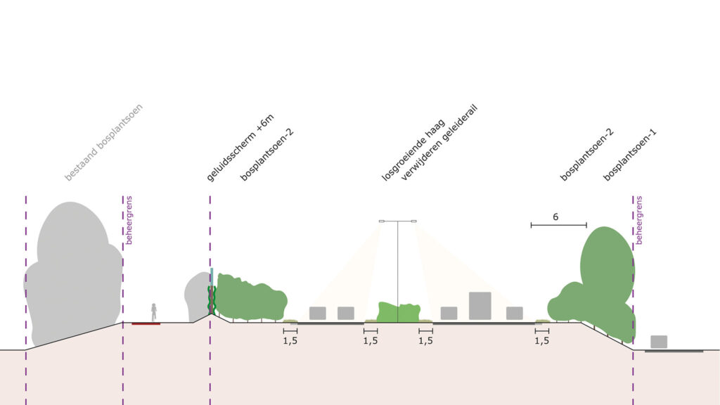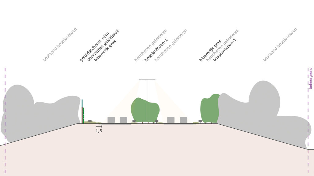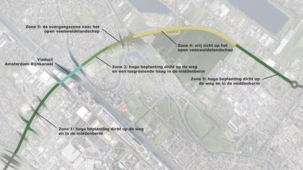 De beplanting in de midden- en zijbermen wordt aangevuld. Landschappartners stelde in opdracht van de Provincie Utrecht het groenplan op, gebaseerd op het principe van ‘natuurlijk sturen’. Door te variëren in hoogte, dichtheid en afstand van de beplanting tot de weg, worden bestuurders onbewust gestimuleerd om langzamer te rijden. De variatie in beplanting sluit bovendien aan bij de verschillende landschapstypen waar de weg doorheen loopt.