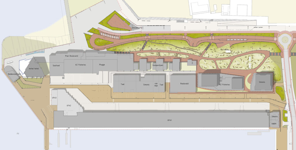 De gemeente Den Haag richt zich op het versterken van de Scheveningse Haven als authentiek centrum met een mix van visserij, watersport, horecavoorzieningen, hotel en wonen. In het duingebied wordt een drielaags parkeergarage gerealiseerd. Het Voorlopig Ontwerp Masterplan buitenruimte geeft een toelichting op de gewenste inrichting en materialisatie van de buitenruimten van de deelgebieden Vis, Havenhoofd en Boulevard.