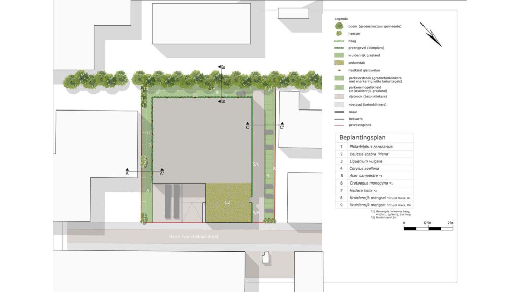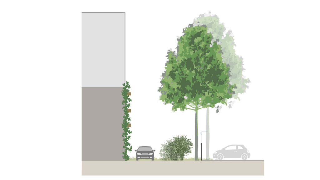 In de gevels zijn vleermuiskasten en zwaluwnestkasten geïntegreerd, aangevuld met een insectenhotel in de groenstrook. Voor de heesters is bewust gekozen voor inheemse soorten. Samen met de kruidenrijke vegetatie trekken deze insecten aan, die op hun beurt vogels, vleermuizen en zwaluwen aantrekken en zo de biodiversiteit versterken.